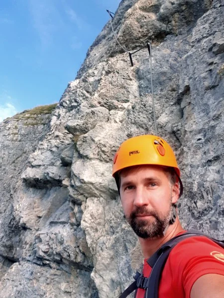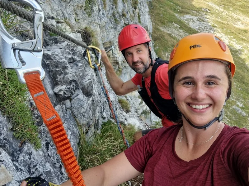 Ada a Saša jdou na Klettersteig Sisi.