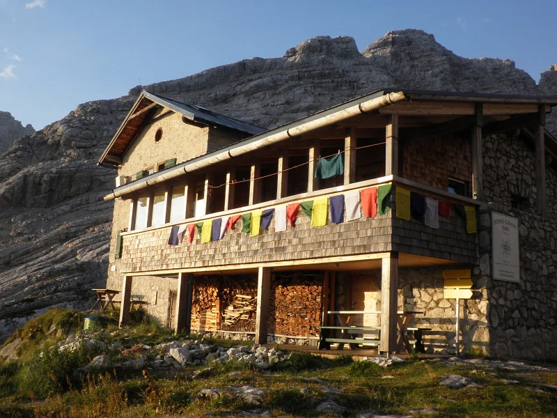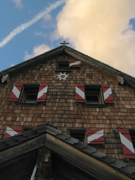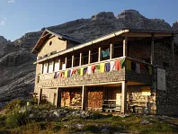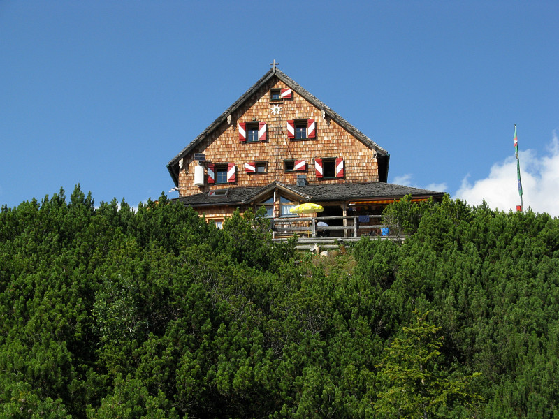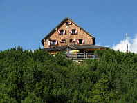 Schmidt - Zabierow Hütte si ranního slunce užívá. Vzadu Reifhorny