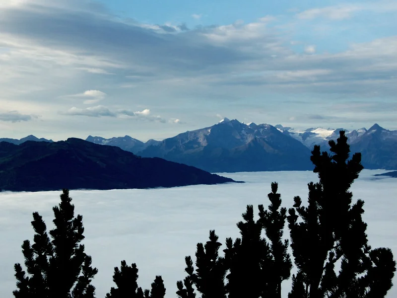 Poslední ráno zde. Vlevo Birnhorn, vzadu uprostřed Ochsenhorn