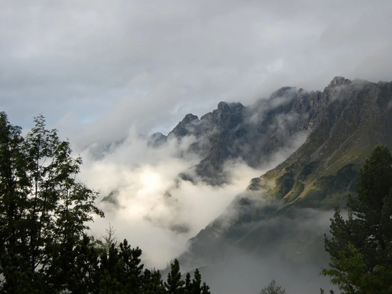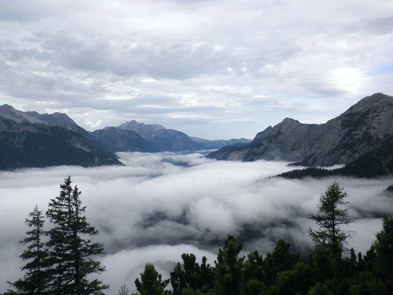 Zamračené údolí řeky Saalach, vzadu Ochsenhorn