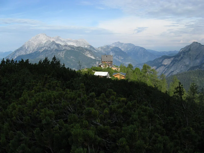 P. W. Hütte na pozadí Leoganger a Loferer Steinberge