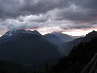 Večerní Birnhorn v mracích, vzadu Ochsenhorn