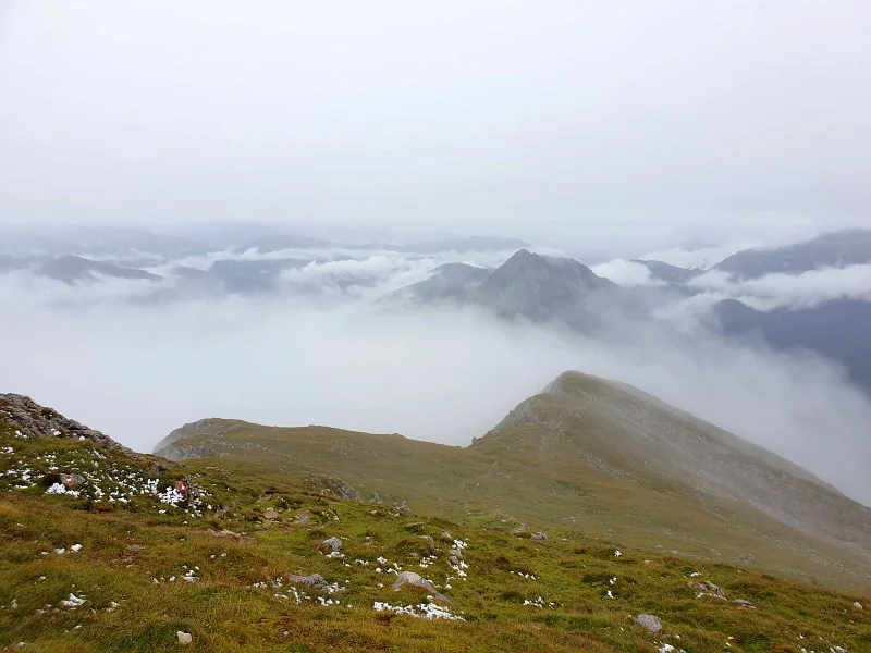 Ohlédnutí za předvrcholy Gr. Pyhrgas. Vzadu Bosruck
