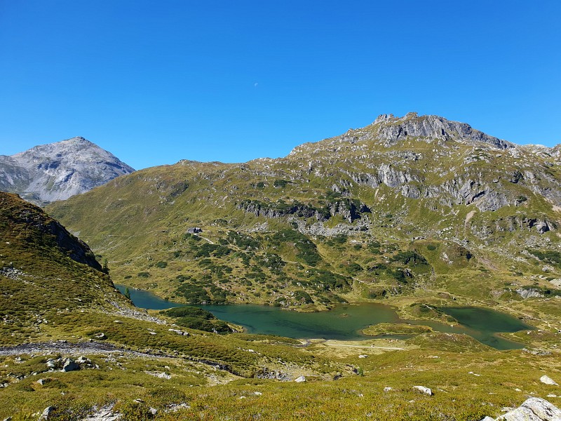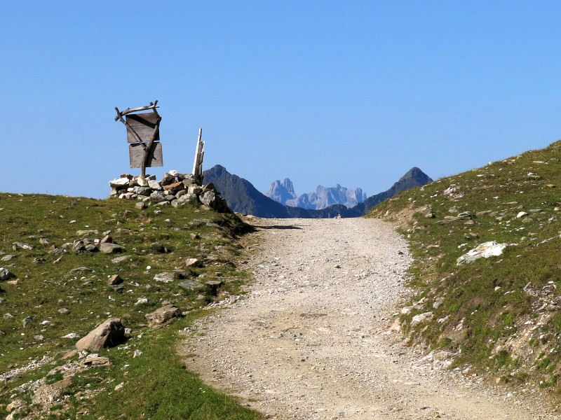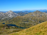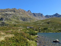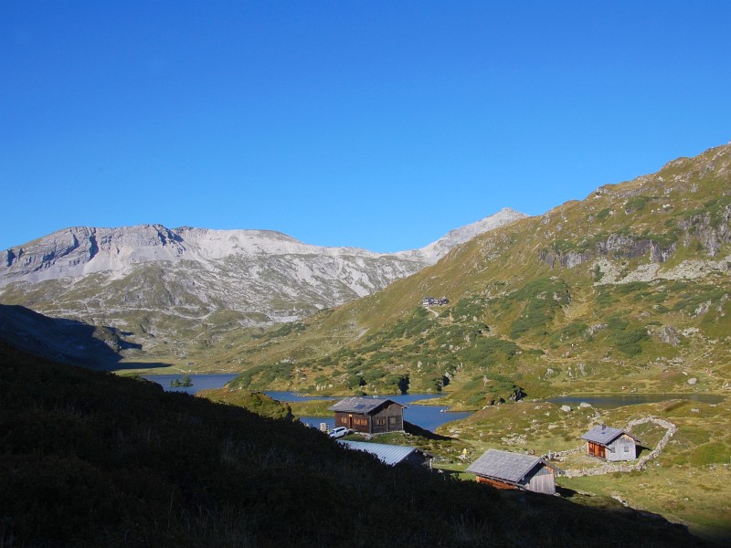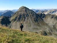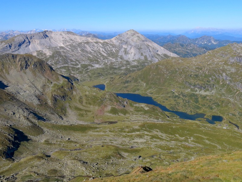 Sedlo u Giglachseehütte, zcela vzadu dvouvrcholová Grosse Bischofsmütze
