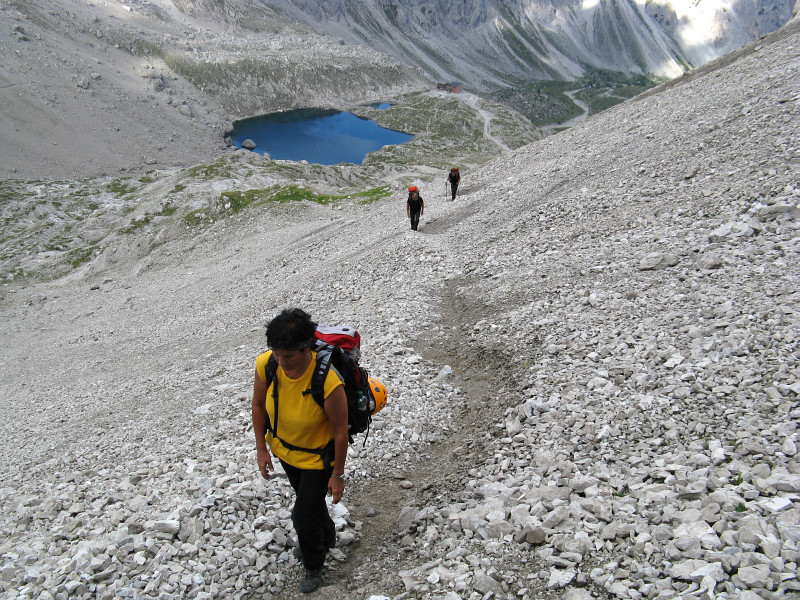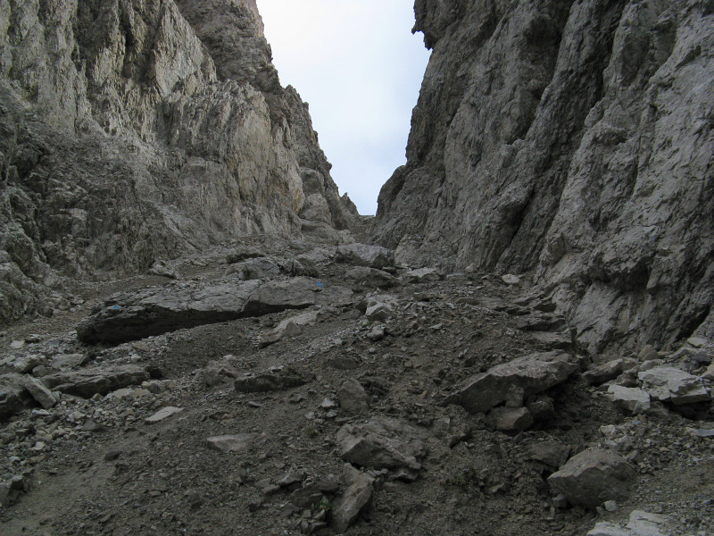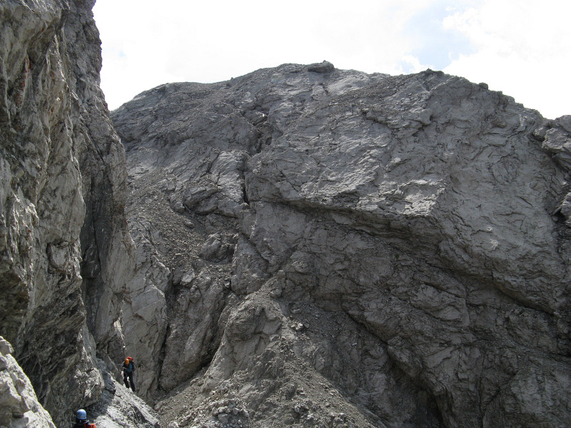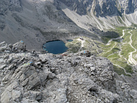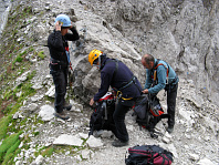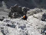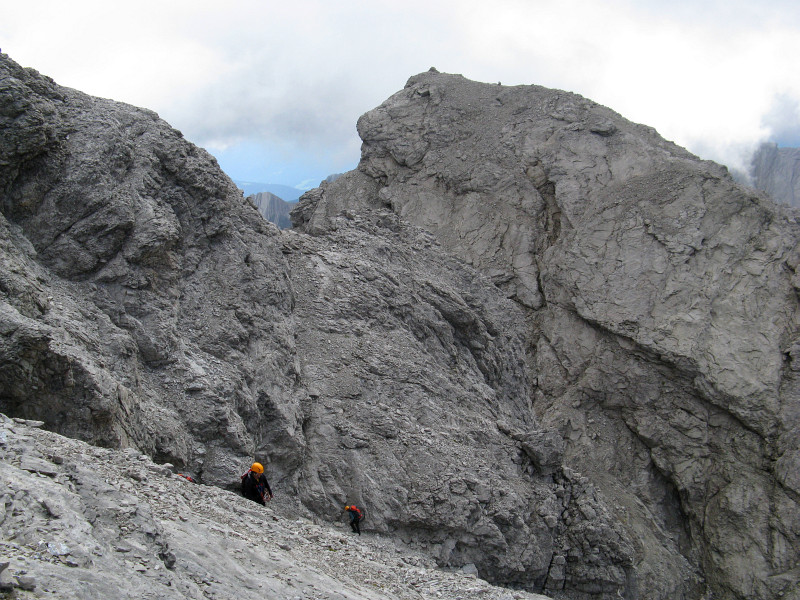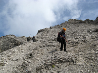 Sestup nepříjemnou sutí ze sedélka Scharten Schartl