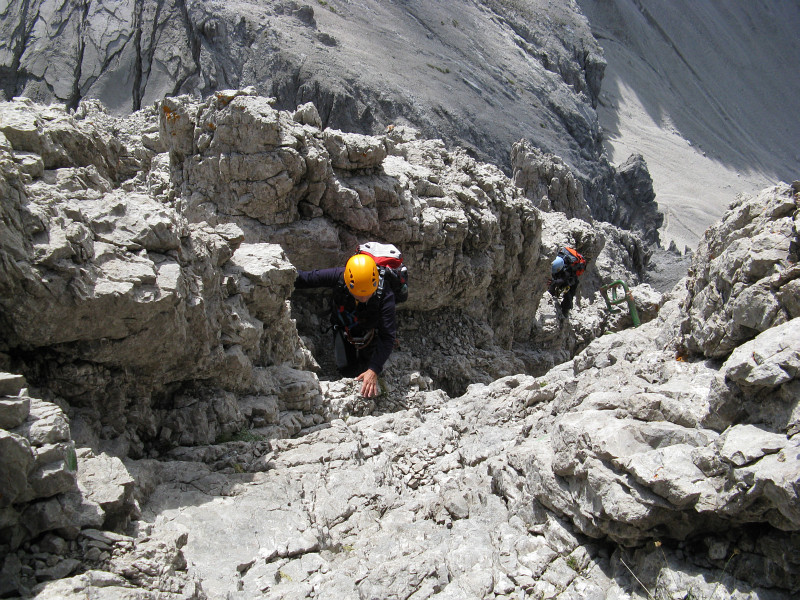 Sestup z Kl. Sandspitze byl snadný. Před námi konečně Klettersteig jak má být