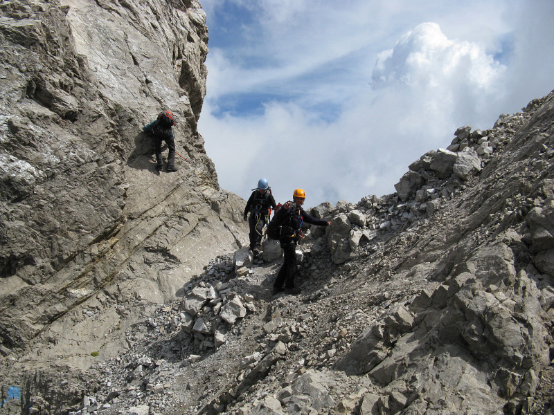 ... na řadu přijde suťový traverz Kl. Sandspitze