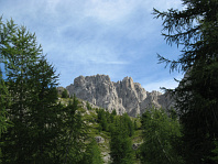 Po hodině přichází zlom. Vpravo vzadu Seekofel s věží Eggerturm