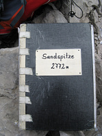 Scharten Schartl. Potvůrka cedulka, která nás expedovala na Kl. Sandspitze