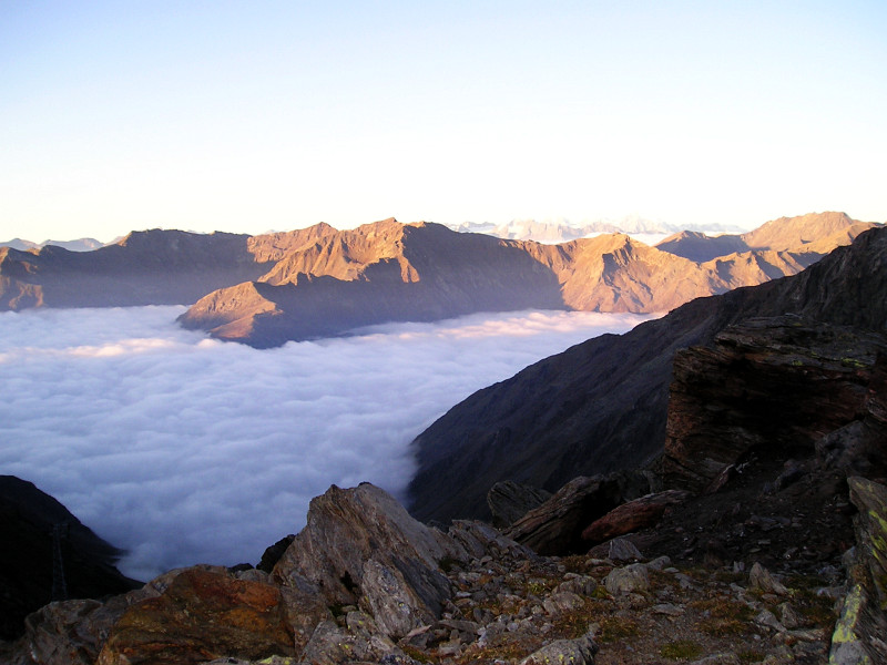 Hintere Schwärze na pozadí Stubaiských a Zillertalských Alp