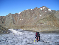 ... a jsme u Ötziho Fundstelle. V pozadí Fineilspitze