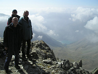 Vojta a Laďa na vrcholovém hřebínku, vlevo bílý předvrchol