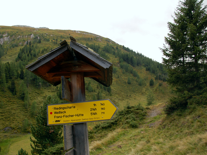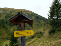 Rozcestník nabízí návrat na Rotgüldenseehütte
