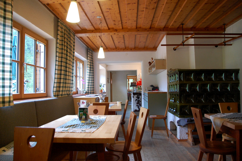 Gaststube Sticklerhütte a její kachlová kamna