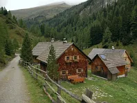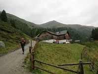 Toto není chata, ale stavení na Hiasbauernalm zoomem