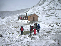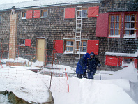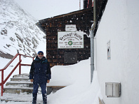Vernagthütte dosažena, za bílou stěnou je skryt náš skvělý Lager