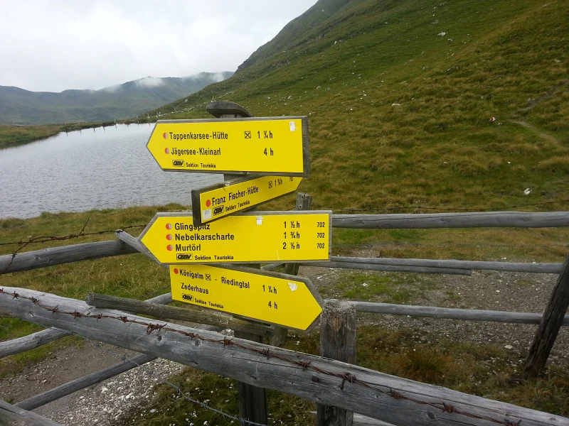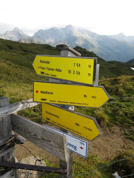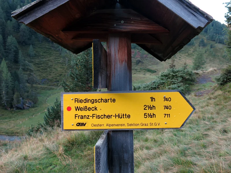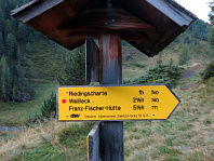 Rozcestník Riedingscharte. Volíme Weisseck