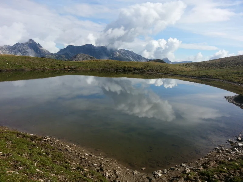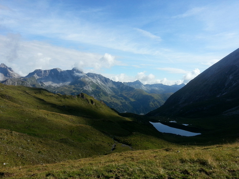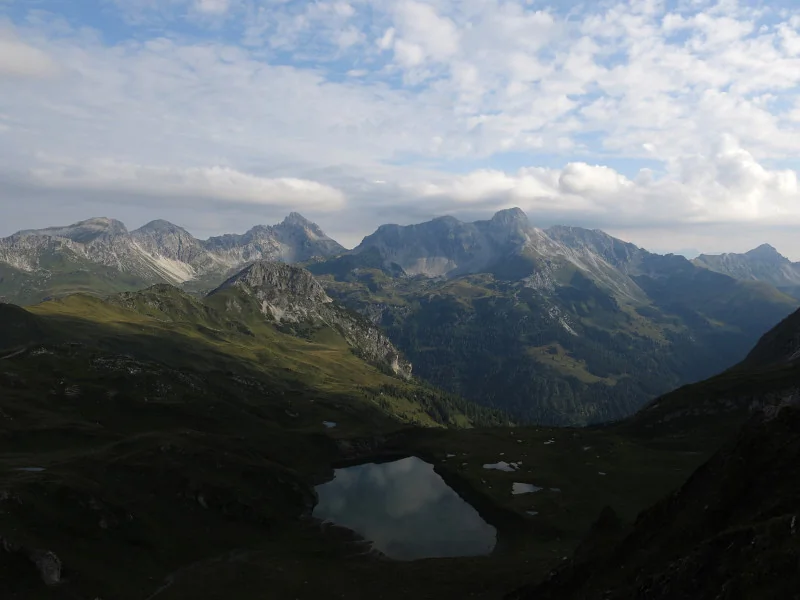 Riedingsee, vzadu Wildkarhöhe, Rothorn, Faulkogel, Windischscharte, Mosermandl