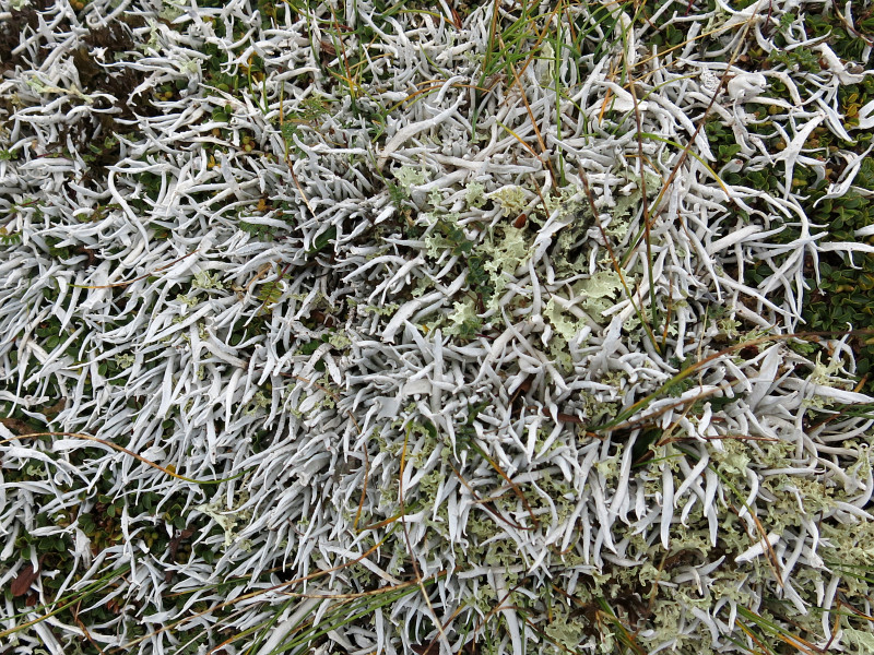 Thamnolia vermicularis & Cetraria islandica. Šídlovec kůstkovitý a pukléřka islandská