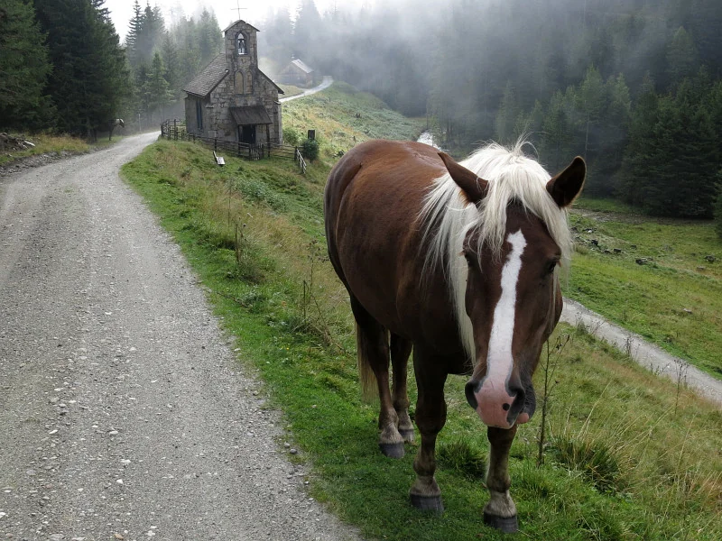 Muritzenalm: kostelík a kůň