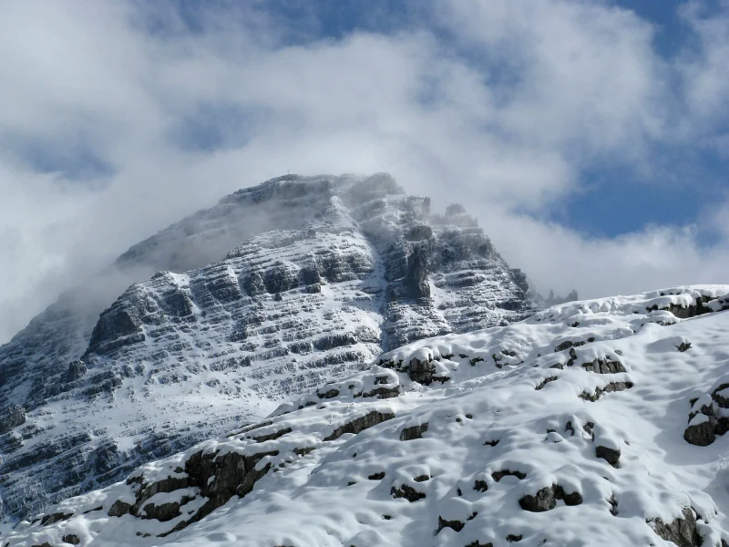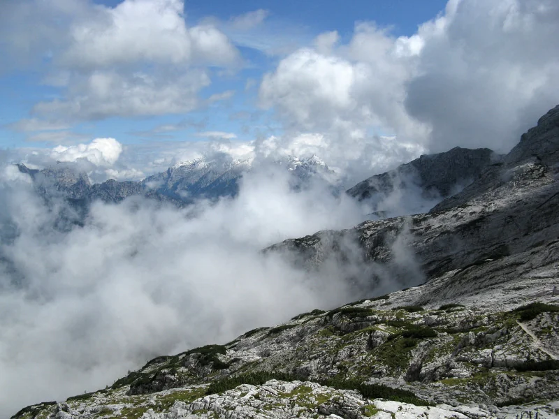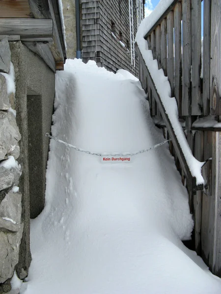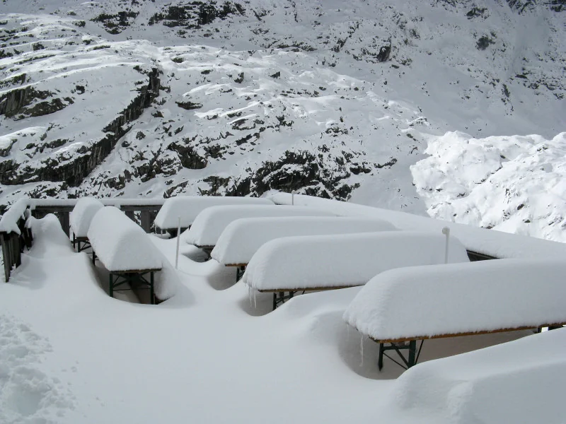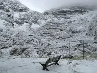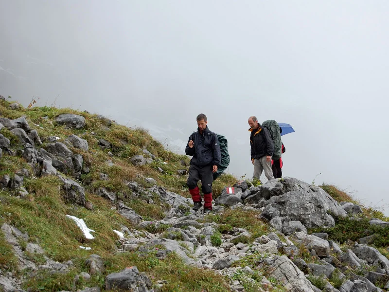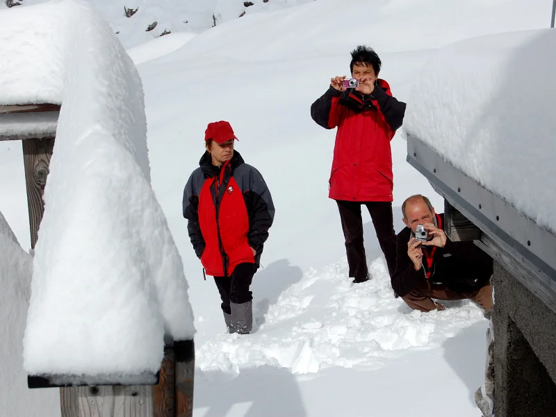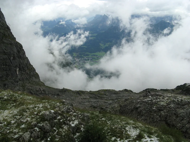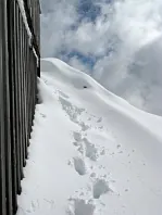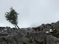 Wehrgrubenjoch zatím k zahlédnutí, vichrem vyvrácená lávka již na nohou