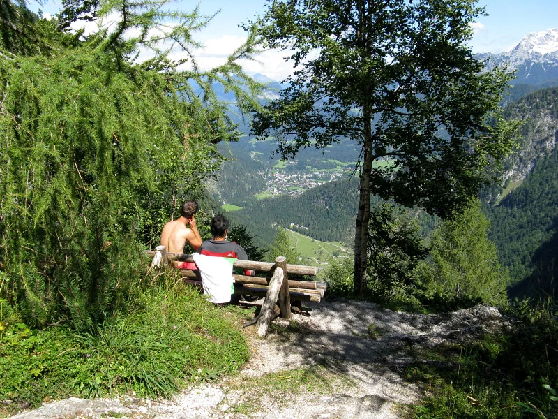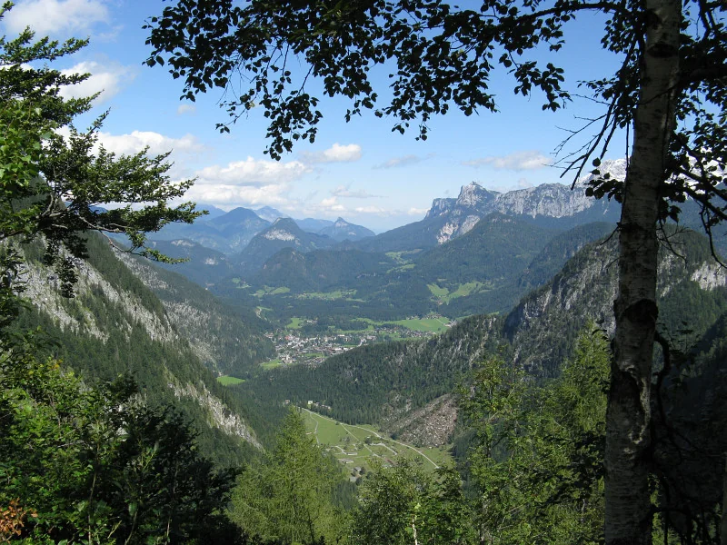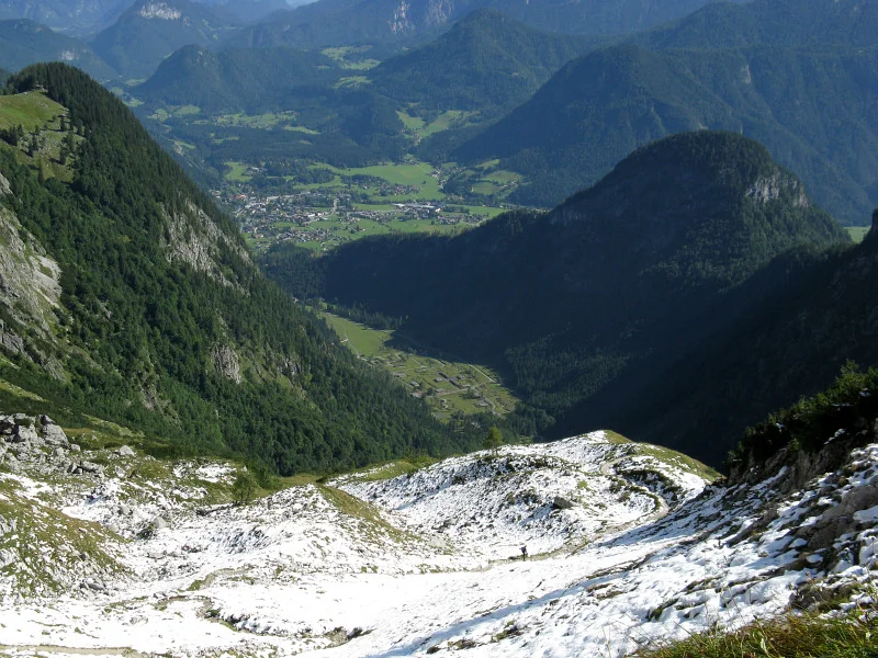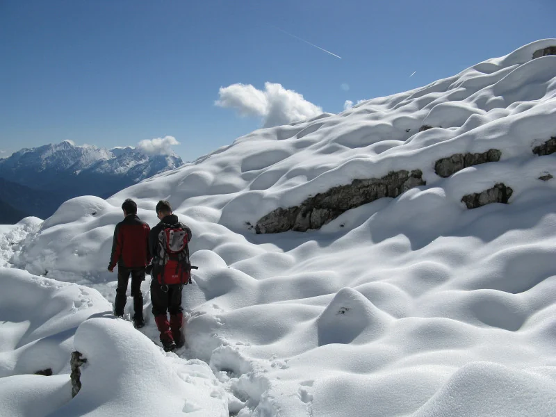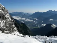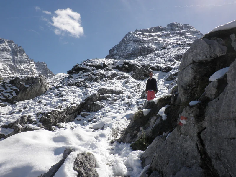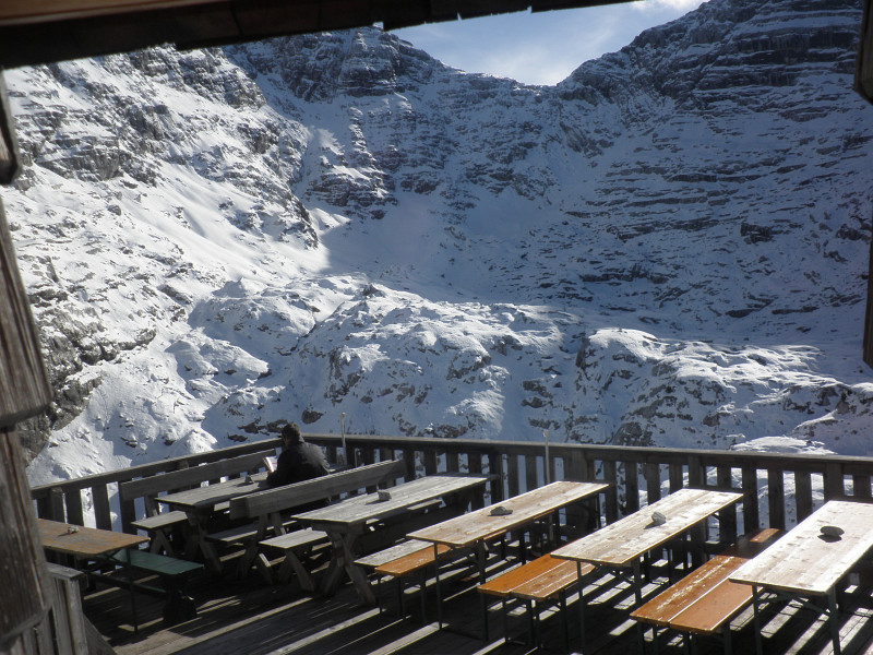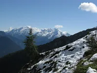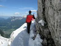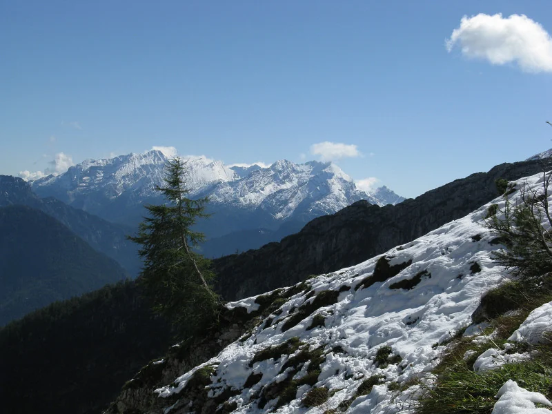 Ve sněhu nad Oberes Trett, vzadu Berchtesgadener Alpen