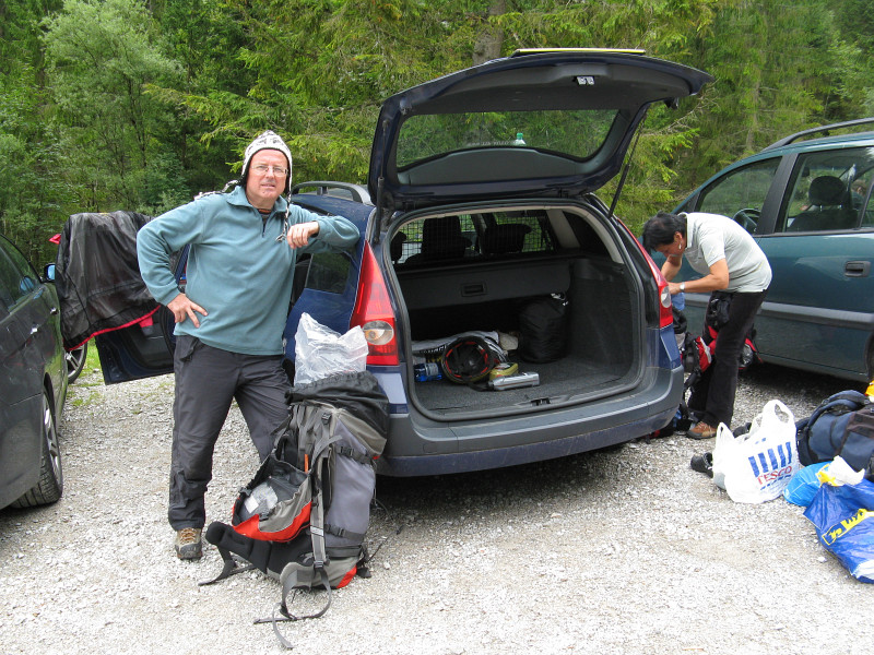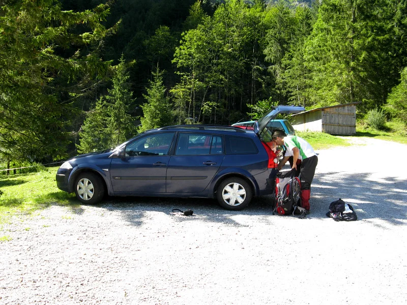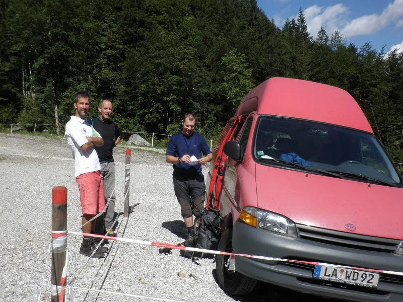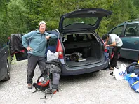 Na parkovišti v Loferer Hochtal. Doplňujeme zásoby