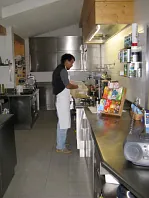 Kuchyňka založena v šutrech vpravo. Čekání na bod varu