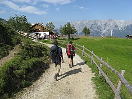 na dohled chatu Mitterfeldalm. Národa zde požehnaně, naštěstí však funguje naše telefonická rezervace noclehů.