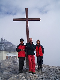 jsou však ještě tmavší. Míjíme chatu a v 15 hodin, 7. září 2008, jsme u kříže Hochkönigu.
