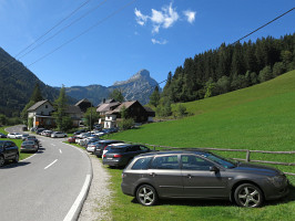 V Mikulově pořizujeme rakouskou dálniční známku a někteří doplňují Eura. O půl druhé parkujeme v Johnsbach u penzionu Gasthof Kölblwirt