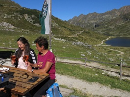 Nastalo "ticho jak na horách". V jednu zahajujeme pomalý sestup do Akarscharte. V sedle zdlouhavě vysedáváme. V 15 hodin jsme na terase Giglachseehütte.