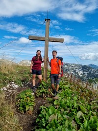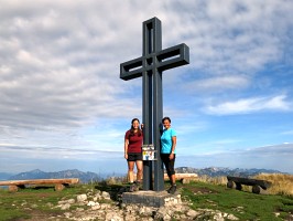 Ve středu v osm ráno jdeme na Loser. U směrovky "Zustieg Klettersteig Sisi" nás opouští Ada. Držíme mu palce a pokračujeme ve výstupu chodeckým terénem. Loser dosažen ve středu 7. září 2022 v 9:20. Ač jde o místo prostorné a lavičky pohodlné, klid nemáme. Netrpělivě očekáváme Adu. K naší upřímné radosti se objevuje v 9:54, jen s mírnými barevnými otlaky od "měkkého vápence". Sisi zvládnuta, můžeme tedy pokračovat v hřebenovce na Hochhanger. Lavičku vrcholové chatky zde zaměstnává přívětivá dvojice "zo Záhoria". Kolem Loserfenster ztrácíme výšku k rozcestníku nad Augstsee a znovu ji nabíráme stoupáním na Greimuth. V závětří založen občerstvovací štand. Bräuning Zinken je odsud docela daleko a mezilehlé sedlo má úctyhodnou hloubku. Horské odhodlání mám v mínusu. Vrhaje toužebné pohledy na promenádu kolem Augstsee, hledám společnost na sestup k jezeru. Děti jdou na Bräuning Zinken. Z lavičky na muldě nad Augstsee pozorujeme, především však posloucháme hráče na alpský roh. Nástroj má opřen o hladinu jezera a svou hrou odpovídá ozvěně hřebene, který jsme dnes absolvovali. Pozoruhodný zážitek.