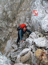 lezení ve snadných ale strmých spárách i stupních a mírně stoupající chodníkové pasáže. Ve chvíli, kdy se zdá,