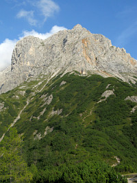volíme směr Wildentalklettersteig. Úvodní část zajištění vede po travnato skalnatém hřebínku a rozhýbá tělo před vlastní "zábavou".