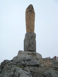 Kromě překvapení v podobě absence vrcholového kříže zde máme ještě jedno - masivní dřevěná lavice z půleného kmene.
