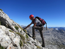 traverz jižní stěny je však velmi exponovaný a navazující výstup východním hřebenem překvapivě strmý.