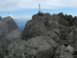 Především však mohutného masivu Kl. a Gr. Sandspitze. Kříž svým pojetím nepotěší každého. Na druhé straně, ne každý sem stoupá kvůli uměleckým počinům křížových výtvarníků.