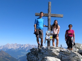 si žádá opatrnost. Naši vrcholoví sousedé nám ochotně pořizují fota u křížku. Po dvaceti minutách se zvedáme k sestupu, čeká nás ještě sousední Lungauer Kalkspitze.