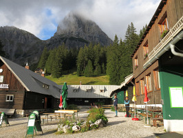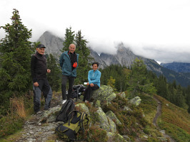 Marvin nás informuje, že odjede v 17 hodin do doliny a vrátí se až příští den. Jsme jedinými hosty, Klinkehütte bude tedy jen naše. Bydlíme v levém křídle chaty, vchodové dveře mají vnější kouli. Stačí malá nepozornost a může být zle. Ada preventivně jistí situaci pootevřeným oknem, Petr svou osobní přítomností. Po patnácté hodině jdeme na vyhlídkový Lahngangkogel (1779 m). Hodinový výstup zkrácen na 50 minut. Počasí nám nepředkládá oslnivá panoramata, vrchol však má své kouzlo. Instruktážní výhled na Kreuzkogel, Riffel, Kalbling, Sparafeld, Reichenstein a Mödlinger Hütte omezuje blížící se srážková fronta a její oblačnost, vše důležité však máme vizuálně k dispozici. Večer obvyklá karetní hra v No.15. Úterý, v souladu s předpovědí, proprší. V naší dlouhodobé horské praxi nejde o žádné novum, jednodenní propršenou epizodu tedy překleneme snadno.