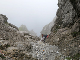 Ferratový set zde nepřinese užitek. Sestup stejnou cestou má, až na krátké pasáže, chodecký charakter.
